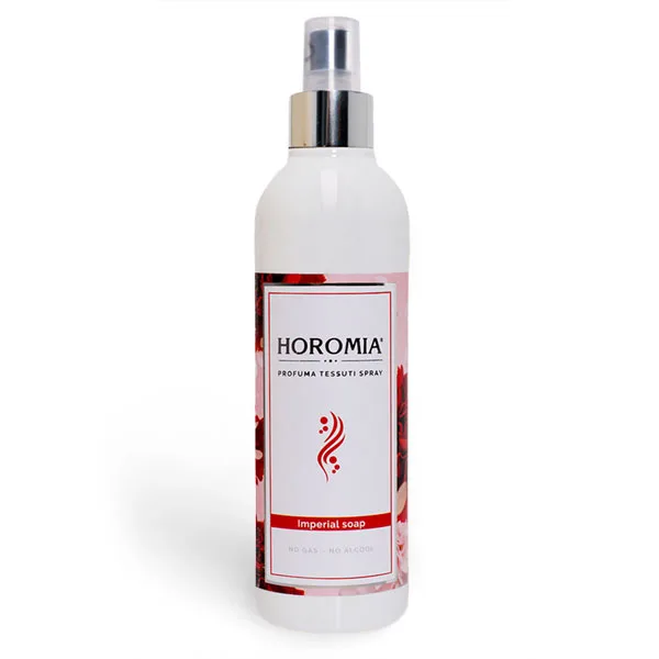 Inovativni izdelek Imperial Soap Horomia je brez alkohola in plinov. Primeren je za vse vrste tkanin, vključno s svilo in kašmirjem. Izdelek ne pušča madežev. Idealen je za zavese, notranjost avtomobila, sedežne garniture in oblačila. Izdelek vsebuje molekule, ki nevtralizirajo neprijetne vonjave.