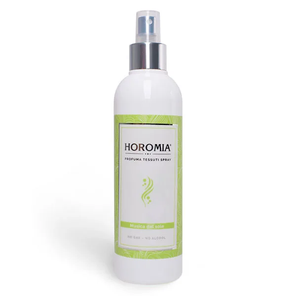 Inovativni izdelek Musica del Sole Horomia je brez alkohola in plinov. Primeren je za vse vrste tkanin, vključno s svilo in kašmirjem. Izdelek ne pušča madežev. Idealen je za zavese, notranjost avtomobila, sedežne garniture in oblačila. Izdelek vsebuje molekule, ki nevtralizirajo neprijetne vonjave.