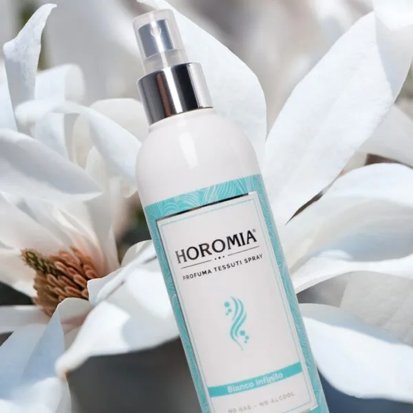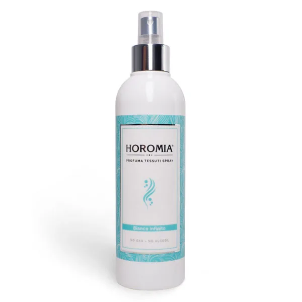 Inovativni izdelek Bianco Infinito Horomia je brez alkohola in plinov. Primeren je za vse vrste tkanin, vključno z svilo in kašmirjem. Izdelek ne pušča madežev. Idealen je za zavese, notranjost avtomobila, sedežne garniture in oblačila. Izdelek vsebuje molekule, ki nevtralizirajo neprijetne vonjave.