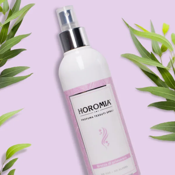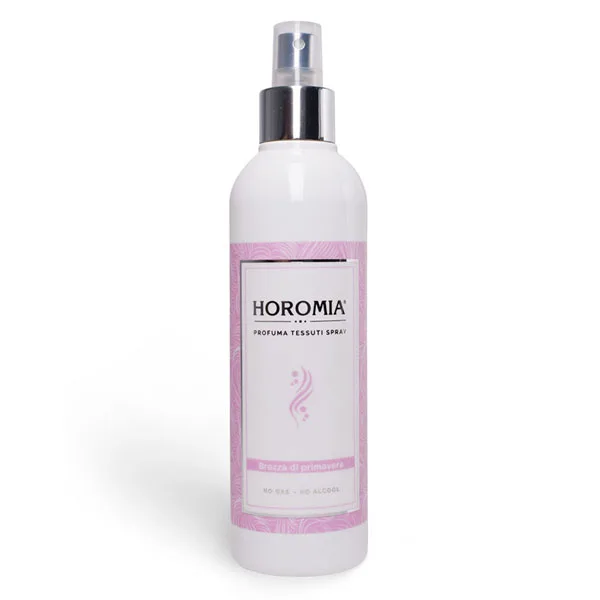 Inovativni izdelek Brezza di Primavera Horomia je brez alkohola in plinov. Primeren je za vse vrste tkanin, vključno s svilo in kašmirjem. Izdelek ne pušča madežev. Idealen je za zavese, notranjost avtomobila, sedežne garniture in oblačila. Izdelek vsebuje molekule, ki nevtralizirajo neprijetne vonjave.
