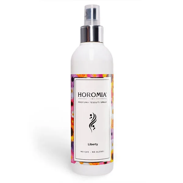 Inovativni izdelek Liberty Horomia je brez alkohola in plinov. Primeren je za vse vrste tkanin, vključno s svilo in kašmirjem. Izdelek ne pušča madežev. Idealen je za zavese, notranjost avtomobila, sedežne garniture in oblačila. Izdelek vsebuje molekule, ki nevtralizirajo neprijetne vonjave.