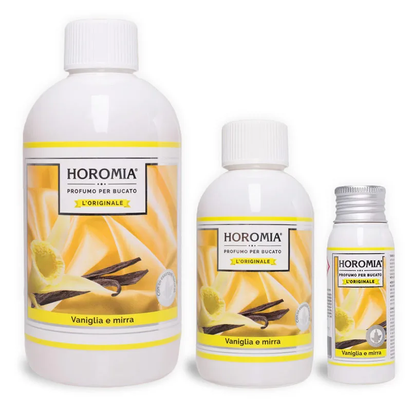 Profesionalni izdelki Horomia so veliko več kot le preproste dišave za perilo. Le nekaj kapljic dodanih v pralni stroj je dovolj za pridobitev dišečih oblačil. Odišavljena oblačila vam dajo občutek dobrega počutja skozi ves dan.
